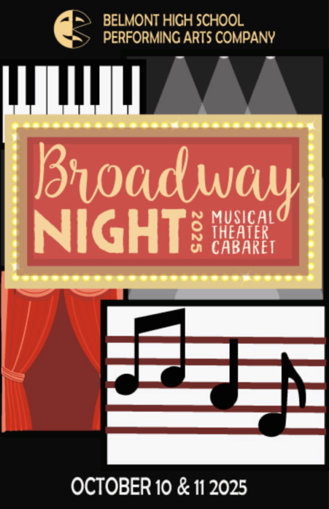 The Belmont High School’s Performing Arts Company opens its 2025-26 season with Broadway Night: the annual musical theater cabaret on October 10 and 11, at 7 p.m. in the Belmont Middle and High School Main Theater