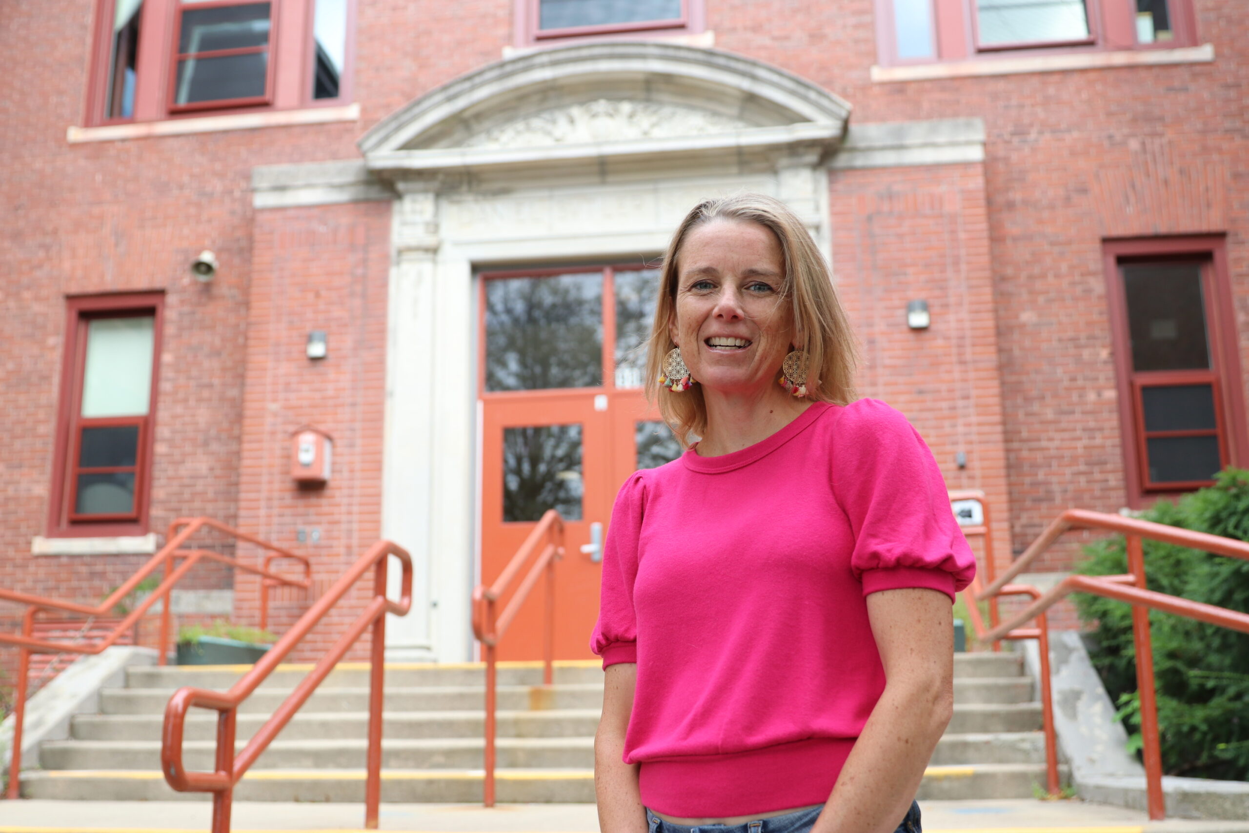 Photo: School Committee Chair Meg Moriarty at the Butler Elementary School