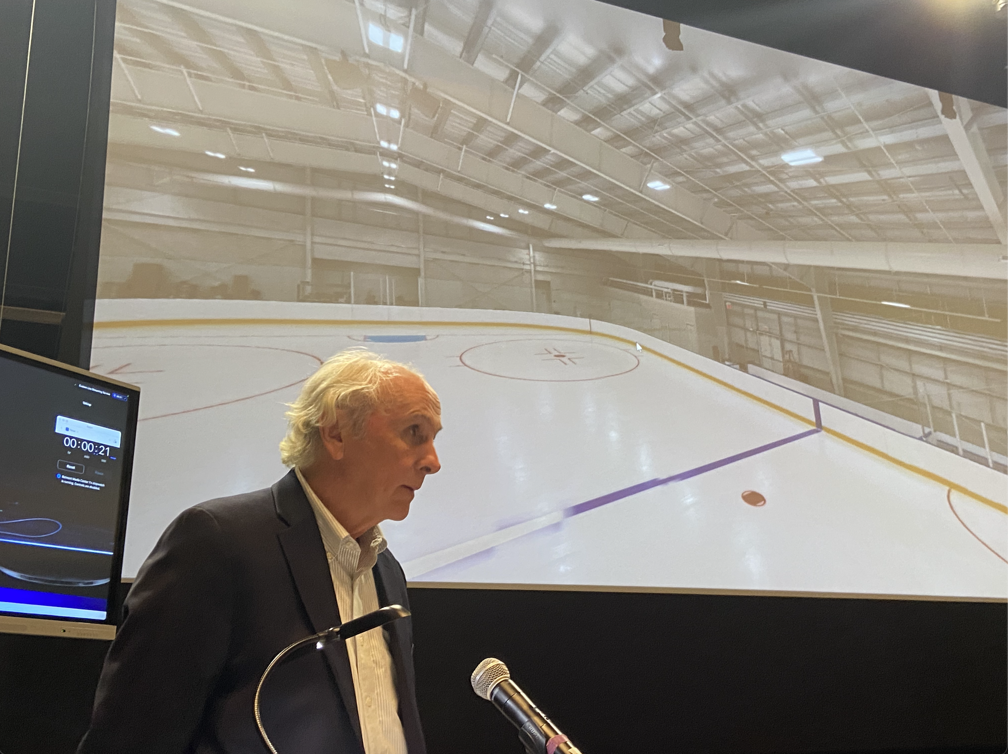 Haley also presented a video from the interior of the facility, providing a tour of the rink as well as a flyover to witness the partial installation of the 26,000 sq.-ft. of solar panels on the roof.